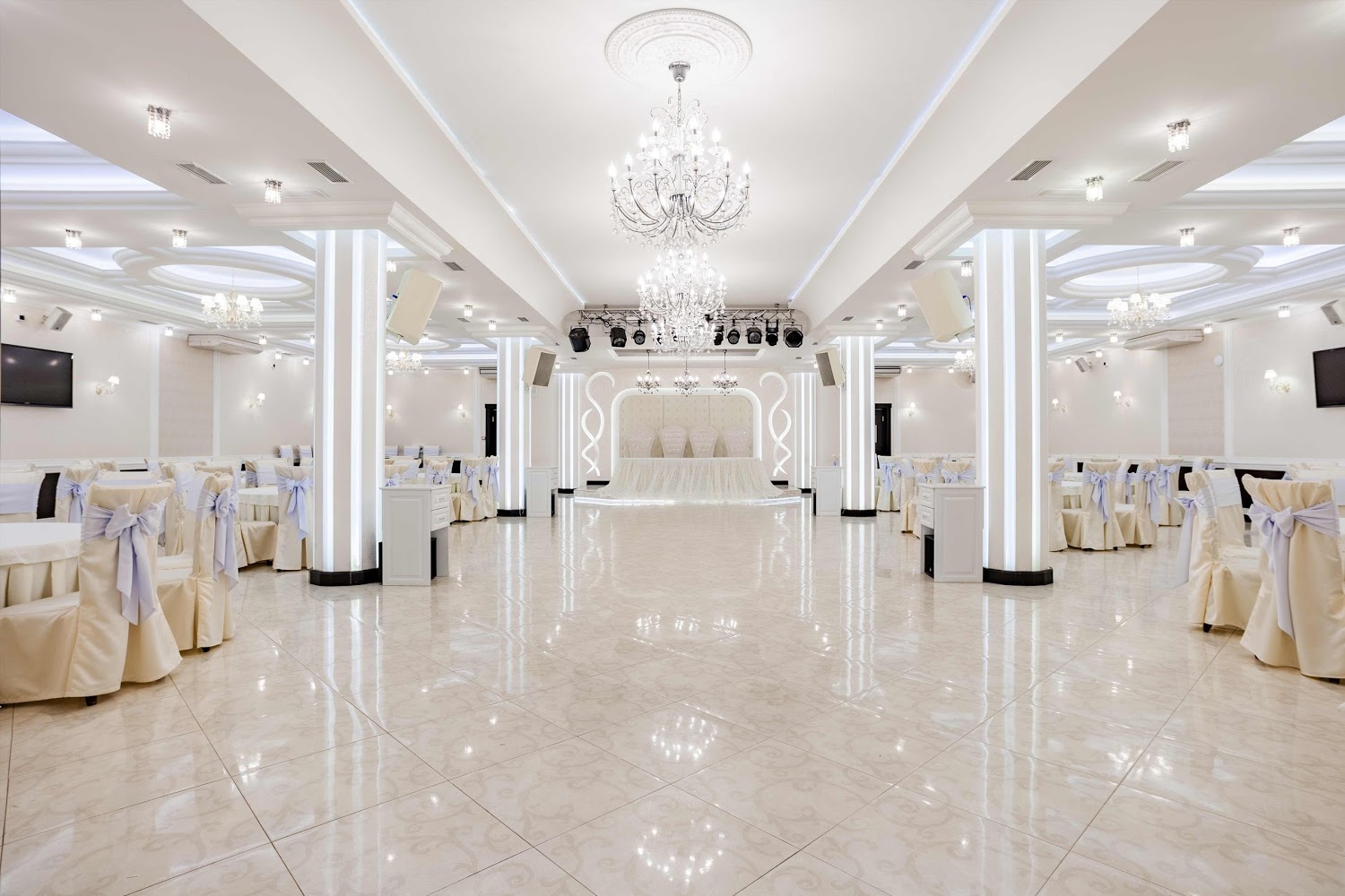 Банкетный зал - Дворец любви. Банкетный зал с Европейской, Русской и Кавказской кухней. Есть два зала, на 80 человек и 420 человек. Можно принести свои фрукты, Можно свои напитки, свое украшение зала. Стоимость 1200 с человека. Парковка на 100 машин. Есть возможность проведения фейерверка. Интерьер выполнен в теплых светлых тонах. Адрес ул. Ростовское шоссе 10 км, 8 800 333 86 11 доб. 259. Банкетные залы Краснодара, каталог банкетных залов Краснодара |